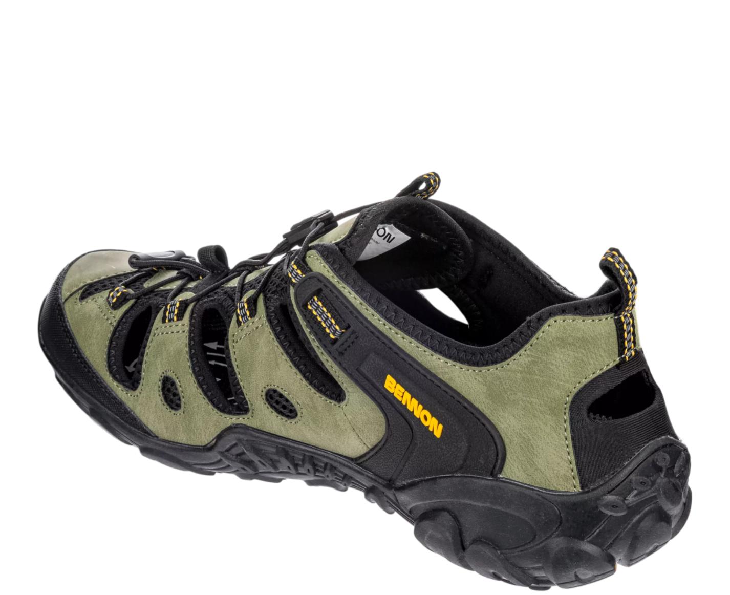 Könnyű és tartós Clifton szandál a Bennon gyártótól. A szandálok zárt orra megvédi a lábujjakat, a merev talp stabilizálja a sarkat, míg a gumírozott bokavédő megakadályozza a horzsolások kialakulását. A praktikus húzózsinórok lehetővé teszik a gyors és kényelmes felvételt. A cipő ideális városba és nyári túrákhoz a természetben.
