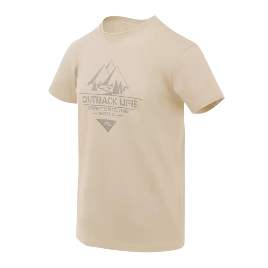 Minőségi pamut póló klasszikus katonai szabásban a Helikon-Tex gyártótól. Dizájn: Outback Life motívum, a kempingezés és a természet szerelmeseinek.